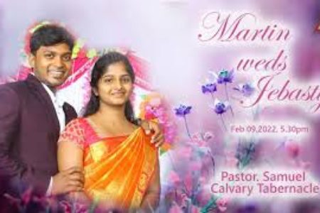 Media information about this sermon Title: Marriage – Martin Weds JebastyType: MediaAudio Format: MP3Video: YouTubeAuthor: Pastor A. SamuelLanguage: TamilEvent: Marriage Session: EveningTotal Duration: 1 Hour 14 Minutes Note: For any questions, please reach us from here