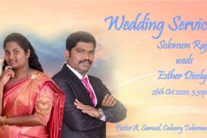 Media information about this sermon Title: Marriage – Solomon Raja Weds Esther DiselyaType: MediaAudio Format: MP3Video: YouTubeAuthor: Pastor A. SamuelLanguage: TamilEvent: Marriage Session: EveningTotal Duration: 1 Hour 16 Minutes Note: For any questions, please reach us from here